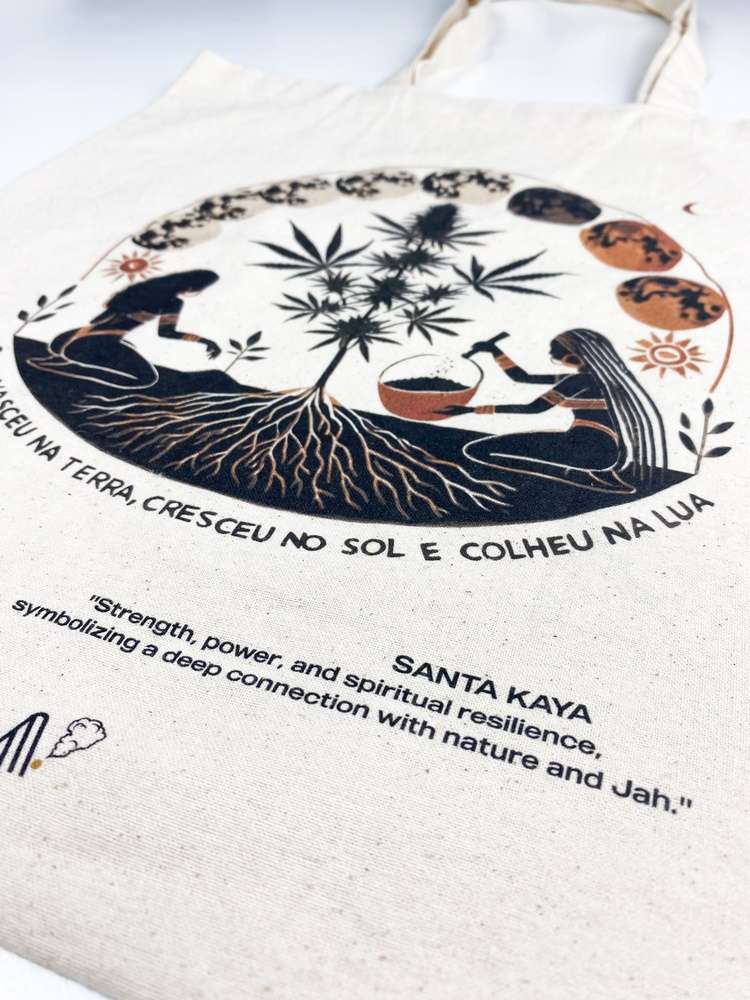 O preço original era: 14,90 €.12,90 €O preço atual é: 12,90 €.Tote Bag Sagrado Ancestral – 100% Algodão – Cannábis Cult